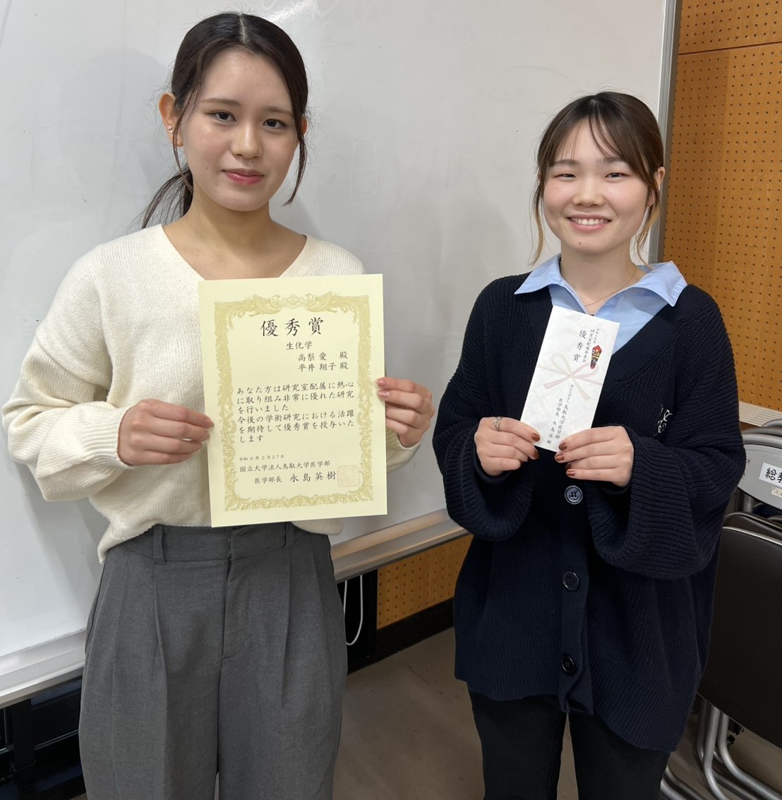 研究室配属で平井翔子さん、高梨愛さんの発表が優秀賞に選ばれました